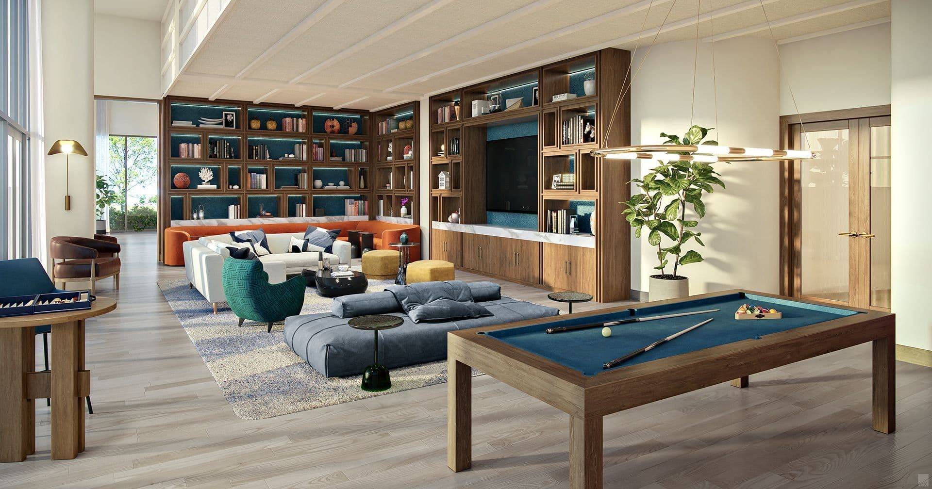Media lounge with golf simulator